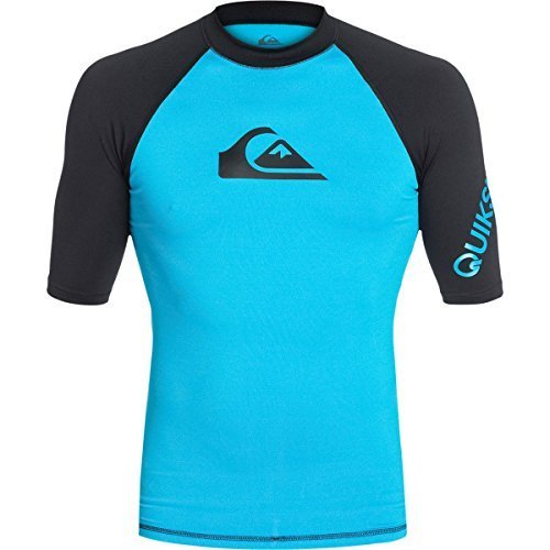 Quiksilver Men's All Time Short Sleeve Surf Tee Rashguard,Hawaiian Ocean/Black,X-Large