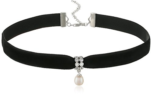 Sterling Silver CZ and Freshwater Cultured Pearl Velvet Choker