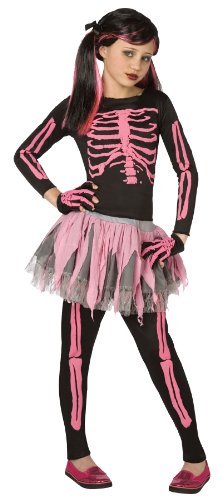 This Punk Rock skeleton girl Halloween costume includes skeleton top and bottoms, cute pink tutu skirt, and matching gloves! Pink and black in color.