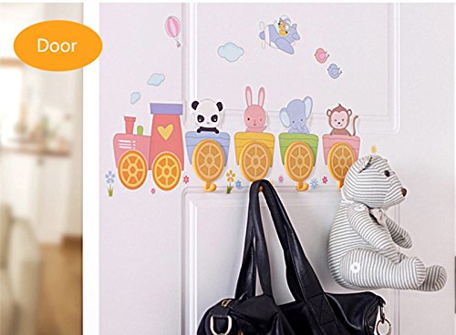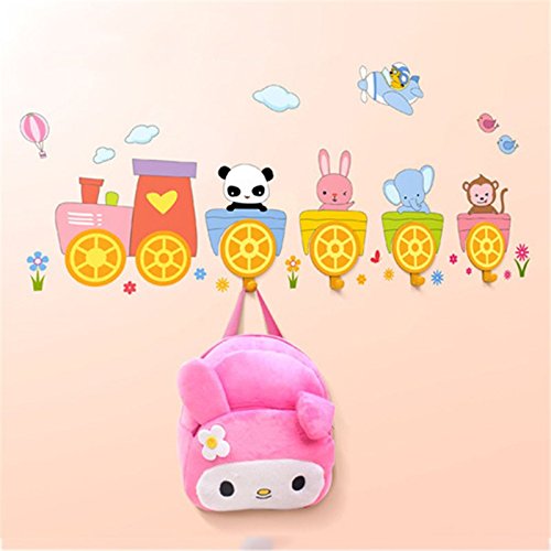 Katoot@ Storage Hooks Hanger Wall Stickers DIY Cute Cartoon Bird Train Ballon Home Self Adhesive For Children Room Home House Decor (Train)