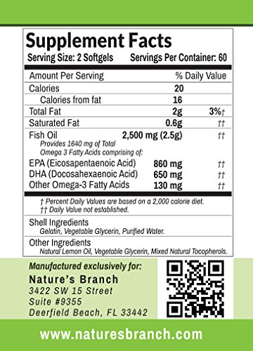 -. Title : ★ BEST TRIPLE STRENGTH Omega 3 Fish Oil Pills ★ 2500mg HIGH POTENCY Lemon Flavor 860mg EPA 650mg DHA 100% Pure Burpless Liquid Softgels 120 Capsules Best Supplement For Brain Joints Eyes Heart Health