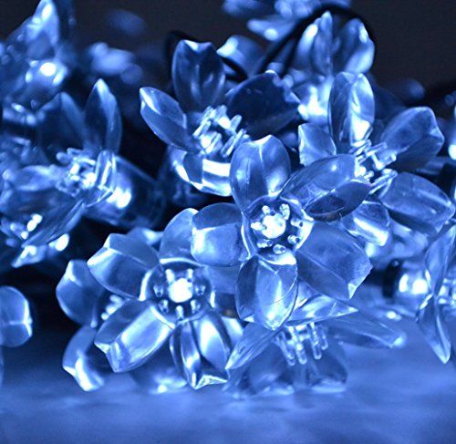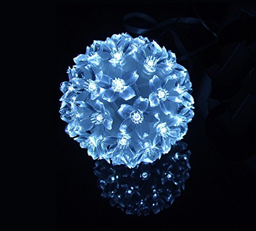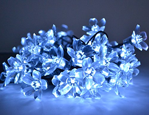 Samyo Waterproof Blossom Flower Solar Fairy String Lights for Outdoor Gardens Homes Christmas Weddings Lighting Party Decoration - 5m 50 Led (White)