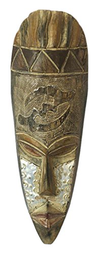 NOVICA Decorative Large Sese Wood and Aluminum Mask, Grey, 'I Believe'