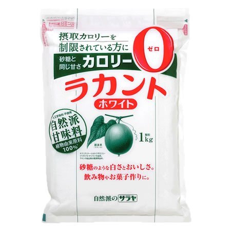 Natural sweetener of calorie 0 made from "Luo Han Fru" extract and erythritol.