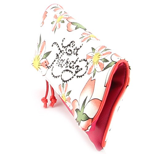 The Ed Hardy Fresh Florals Amarylis Clutch is part of the Ed Hardy Fresh Florals Collection. Features a fresh floral print in canvas and trimmed in PVC. Sparkling rhinestones decorate signature on the Foldover flap. Zippered closure, Interior zippered pocket and open pockets for multipurpose use.Feature