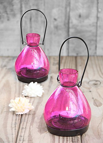 -. Title : Mini Decorative Hanging / Table Mount Lanterns Pink Color Glass Acrylic Set Of 2 for Home Indoor & Outdoor Party Decoration