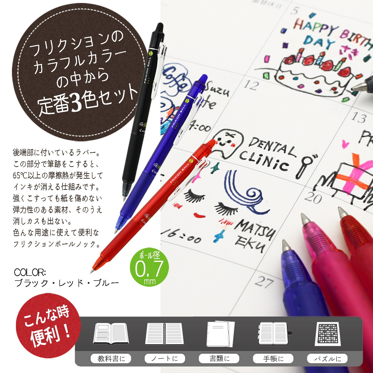 Pilot FriXion Ball Knock Retractable Gel Ink Pen - 0.7 mm - 3 Color Set