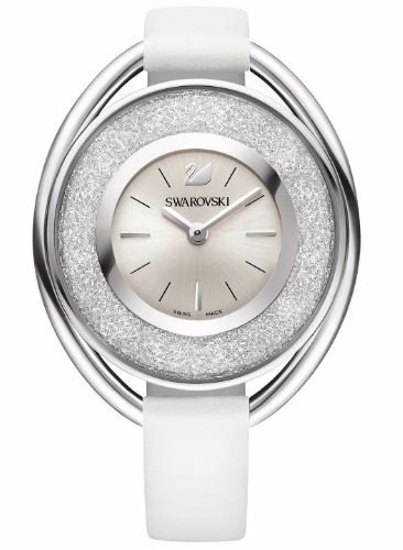 Add A Touch Of Sparkle Every Day With This Fashionable Swarovski Timepiece In An Innovative Oval Shape. Case - Oval Stainless Steel Outer Ring Circular Inner Ring Filled With Approximately 1700 Clear Crystals 37×43mm. Dial - White Silver Sunray With Applied Index Markers At 3 6 And 9 Oclock. Strap - White Calfskin Leather With Ardillon Buckle. Water Resistant. Swiss Quartz Movement.