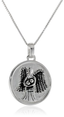 Sterling Silver "Watch over My Children" Angel Holding a Baby Circle Pendant Necklace, 18"