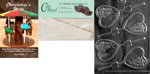 Cybrtrayd 'Heart with Bouquet Lolly' Valentine Chocolate Candy Mold with 25 4.5-Inch Lollipop Sticks and Chocolatier's Guide