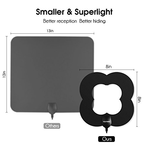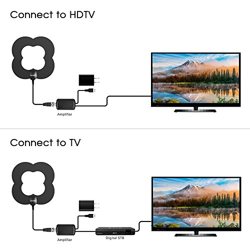 Studio : Ceyo Publisher : Ceyo Binding : Electronics Product Description TIPS: ◆If your TV does not have a built-in tuner, a Set Top Box is needed to pull in HDTV signals ◆Please check which channels are available in your area by visiting "antennapoint.com" ◆Re-scan the channels after install or whenever you move the small antenna ◆Install the tv antenna as high as possible and near a window for better reception ◆Keep the indoor antenna away from metallic objects or high power consumption devices ◆Signal reception depends on the distance from tower, terrain, surroundings and weather, reposition the hd tv antenna in different locations if necessary INSTALLATION: 1.Connect the hd tv antenna to "ANT IN/CABLE IN"?on the back of TV and set the mode to indoor antenna or air 2.Reposition the indoor tv antenna in different locations to find best reception. It is suggested place it higher on a wall or closer to the?window 3.Stick the small antenna on the window(Recommended)/wall.?Scan channels by selecting 'Menu' then 'Channel Search'. Now you can enjoy crystal clear hd TV shows FEATURES: √ Free channels, no monthly fees, supports digital and smart TV for high definition 4k channels √ Upgraded 60 mile antenna for better reception: the latest hdtv antenna amplified signal up to 60 mile range √ Detachable amplifier signal booster: you can detach the booster when a signal tower within 10 meters of your house √ Small size hd antenna, better to hide it behind the TV SPECIFICATION: Voltage:?5V Material: PVC Size (L x W?x H) : 8'* 8'?* 0.01' Extended Range: Up to 60 miles Operating Temperature:?-45-185℉ (-40-85℃)? Frequency Coverage: VHF 47-230 MHz ?UHF 470-862 MHz PACKAGE: 1 x TV Antenna with 16.5ft Coaxial Cable 1 x Signal Amplifier 1 x User Manual 1 x Adapter 2 x Stickers 0