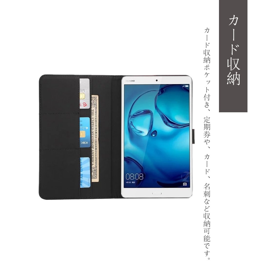 Features: The inside of the case is equipped with a card slot, so you can store cards, commuter passes and so on.