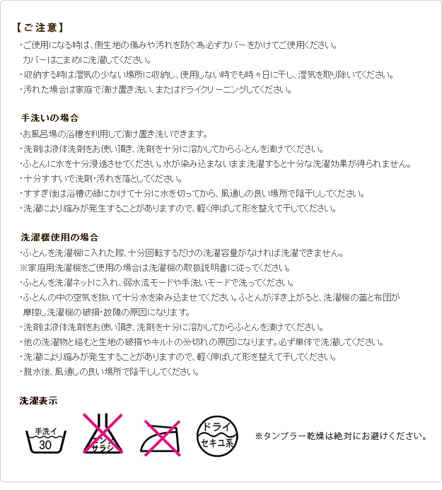 ●中綿:ポリエステル100%(ダクロン・ドリームエッセンス)