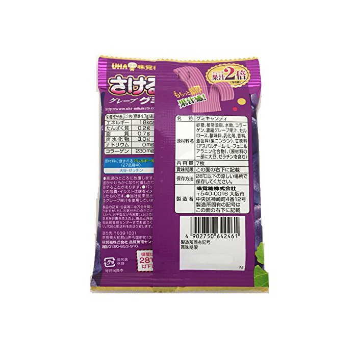 UHA미카쿠토 미카쿠토 하 차 구미(젤리) 그레이프 7마이×10 포