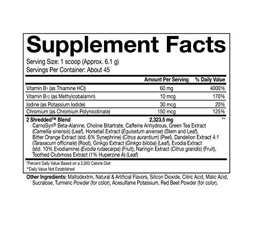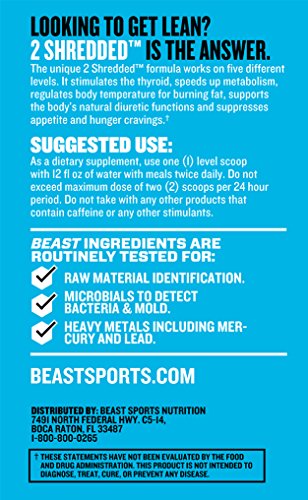 -. Feature : BURNS BODY FAT: This powerful thermogenic fat burner supports a more active metabolism so you can cut weight while improving your body's natural fat burning abilities. You'll feel a healthy sweat build up signaling that your body is heating up and burning off fat reserves. / CONTROLS APPETITE: 2 Shredded is a thermogenic drink mix, pre-workout powder, and fat burner that helps to crush cravings so you can maximize its fat burning potential. You'll feel less of a desire to binge on unhealthy junk food so you can stay focused on your workout and weight loss goals. / INHIBITS WATER RETENTION: Excess water weight can ruin your confidence if you're working to lose weight and build a stronger physique. 2 Shredded features an all natural herbal diuretic to expel excess water from your body so you can make the most of your weight loss. Flushing excess water will also keep your physique looking tight, hard and shredded. / SUPPORTS A HEALTHY THYROID: Most other fat burners ignore the importance of healthy thyroid function, but it's essential for kick starting your metabolism and fighting fatigue. With 2 Shredded, you'll feel leaner with more energy so you can push through through the toughest workouts. / INCREASES DAILY ENERGY: This unique fat burning matrix will have you feeling more energetic and active so you can boost your workouts and maximize every rep. This boost of energy will keep you motivated and driven, whether you're looking to add lean, shredded muscle or burn off that pesky belly fat.