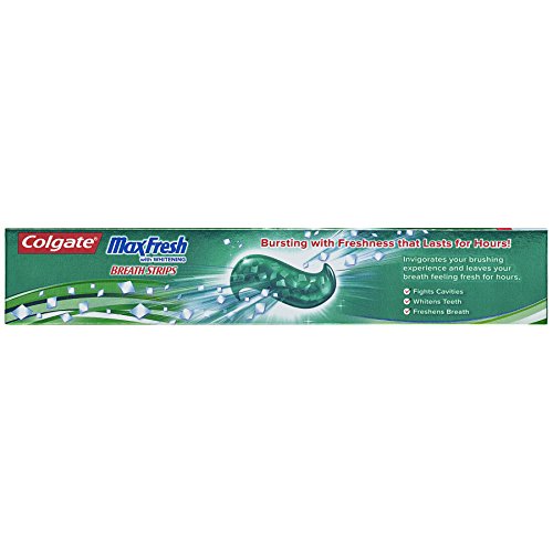 Breathe confidently with this unique formula-- packed with hundreds of mini breath strips that unleash a powerful rush of freshness for long-lasting fresh breath. Colgate MaxFresh Clean Mint invigorates your brushing experience and leaves your breath feeling fresh for hours. Plus, it fights cavities and whitens teeth leaving you with a healthy smile. For information about this product visit http://www.colgatemaxfresh.comFeature