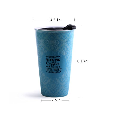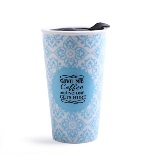 Classic Printed Double Wall Ceramic Travel Coffee Mug Water Cup(blue)