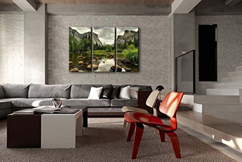 -. Title : So Crazy Art® 3 Pieces Green Wall Art Painting Yosemite National Park Clear Water Lake Mountain Trees Rocks Pictures Prints On Canvas Landscape The Picture Decor Oil For Home Modern Decoration Print For Items