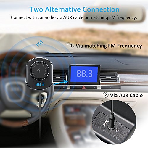 Easy to Start Up: Plug it into the cigarette lighter socket, turn your car FM radio on, find an blank radio station, and match it to this transmitter; Pair it with your phone via Bluetooth--Enjoy music in your smartphone through the car's stereo system (Auto-connect to last paired device).