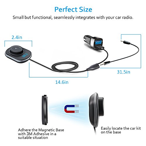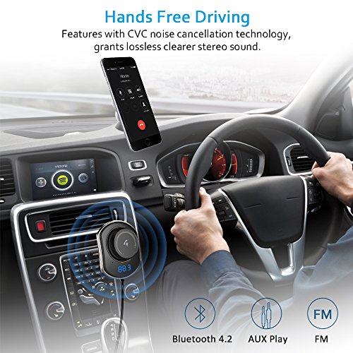 Broad compatibility: Bluetooth 4.2, works with almost all Bluetooth devices; Compatible with all cars no matter whether it is with AUX port or not--You can connect this kit with car audio via AUX cable or matching FM frequency.