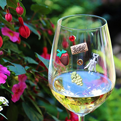 -. Title : MERLOT Magnetic Wine Glass Charms (Set of 6) by Claim Your Glass - Premium Drink Markers for Wine, Champagne, Beer, Cocktail Glasses - Includes Storage Case + Spare Magnet