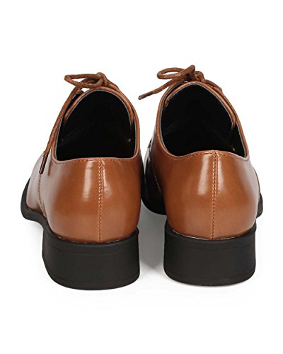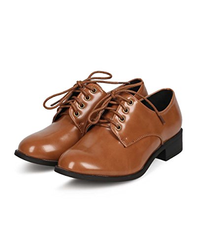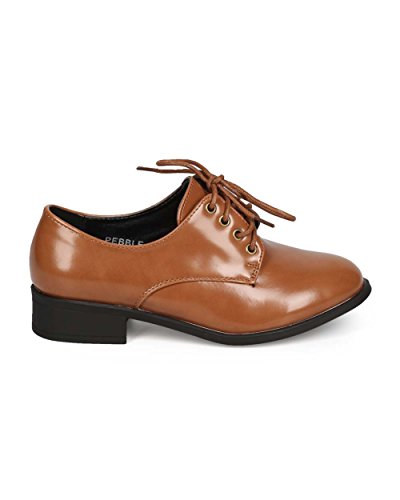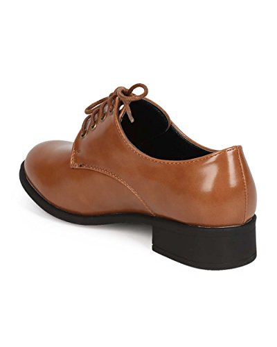 Refresh EC32 Women Polished Leatherette Classic Lace Up Oxford - Taupe