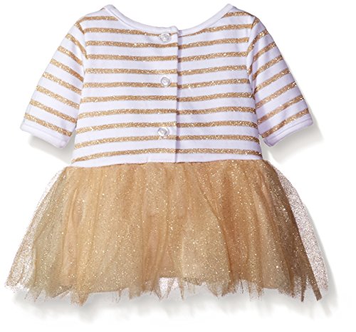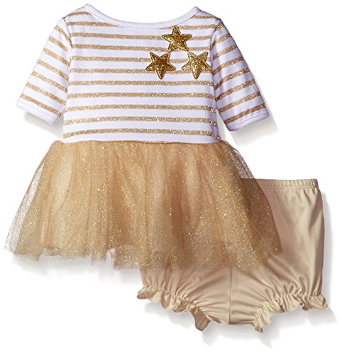 This adorable tutu dress has a sparkly gold tutu skirt and a gold sparkle star applique on the knit bodice