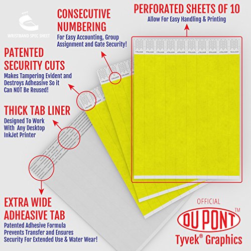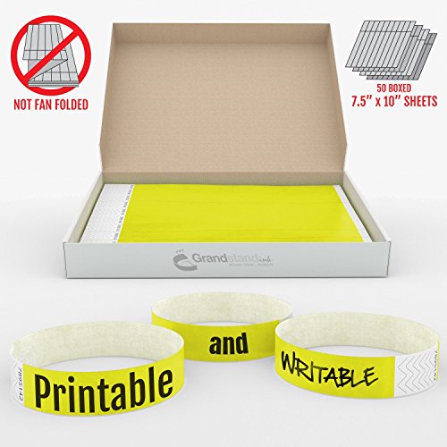 -. Title : Grandstand Ink - 3/4in NEON YELLOW Tyvek® Wristbands - P.R.Int & Writable Sheets in Distribution Box