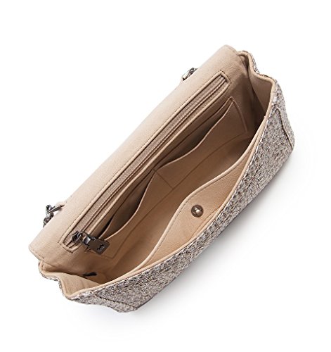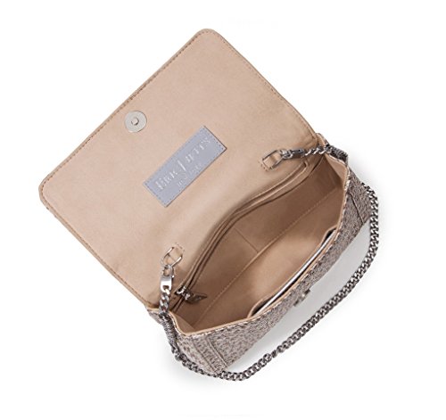 Outer slit pocket on reverse will hold a cellphone or reading glasses. Detachable chain shoulder strap. Inside: Lush microfiber suede lining, side wall zipper compartment, roomy patch pocket, and four credit card slots