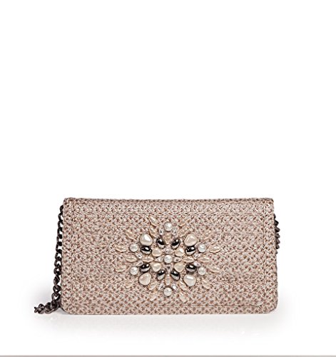 Envelope clutch of Squishee® adorned with multi baroque pearls, Swarovski crystals and glass stone motif. Flap closes with magnetic snap. Outer slit pocket on reverse will hold a cellphone or reading glasses. Detachable chain shoulder strap. Inside: Lush microfiber suede lining, side wall zipper compartment, roomy patch pocket, and four credit card slots. All Eric Javits handbags are lightweight and durable.