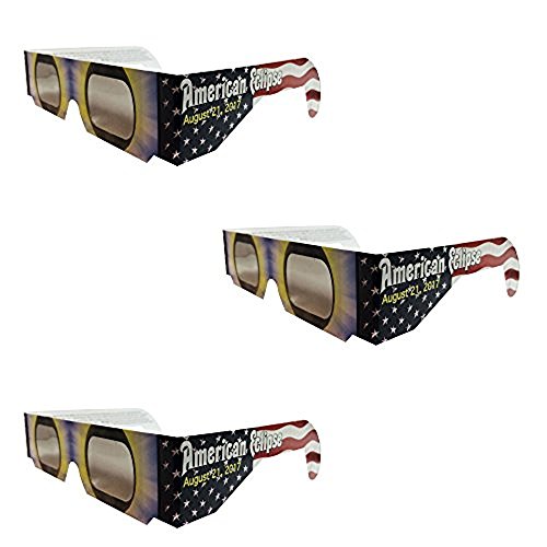 Set of 3 Solar Eclipse Glasses, ISO 12312-2 compliant and CE certified Eclipse Glasses for Direct Sun Viewing (American Flag)