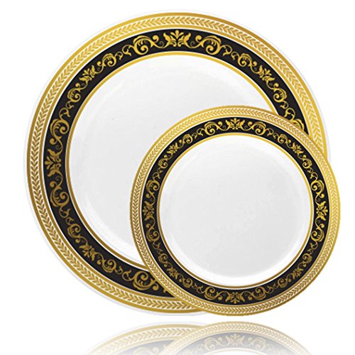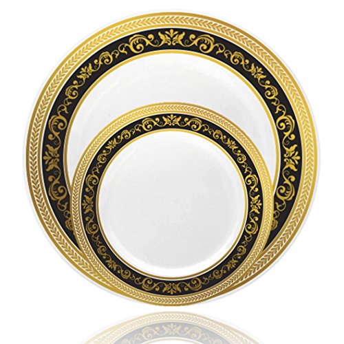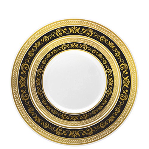 Posh Setting Royal Collection Combo Pack China Look White, Gold/Black Plastic Plates,(Includes 8 Packs of 10 Plates, 40 10.25'' Dinner Plates and 40 7.25'' Salad Plates), Fancy Disposable Dinnerware