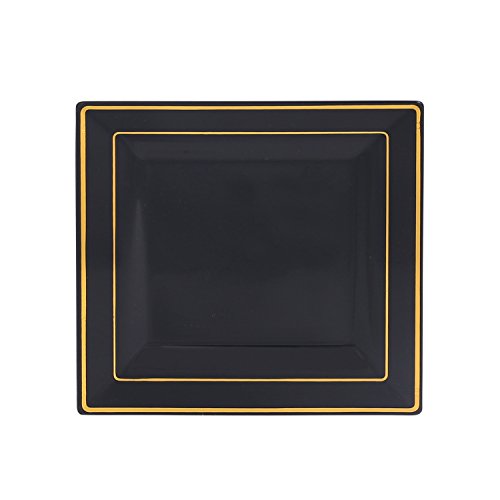 Kaya Collection - Disposable Black with Gold Rim Plastic Square 6.5" Salad/Dessert Plates - 2 Pack (20 Plates)