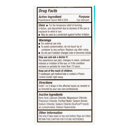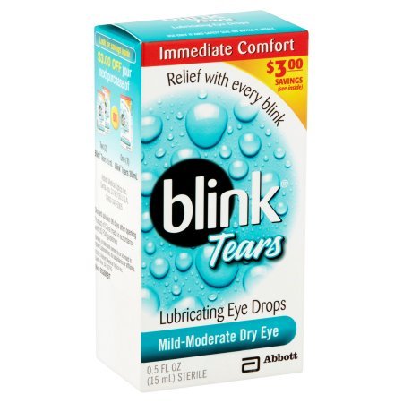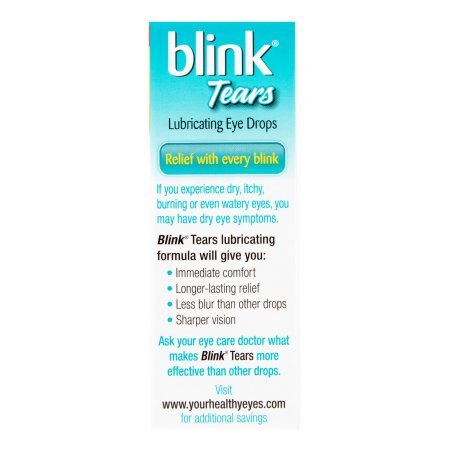 Studio : Blink Publisher : Blink Binding : Health and Beauty Product Description Tears Lubricating Eye Drops Relief with every blink If you experience dry, itchy, burning or even watery eyes, you may have dry eye symptoms. Blink Tears lubricating formula will give you: Immediate comfort Longer-lasting relief Less blur than other drops Sharper vision Uses For the temporary relief of burning, irritation, and discomfort due to dryness of the eye or exposure to wind or sun. May be used as a protectant against further irritation. Drug Facts Active Ingredient - Purpose Polyethylene Glycol 400 0.25% - Eye lubricant 0