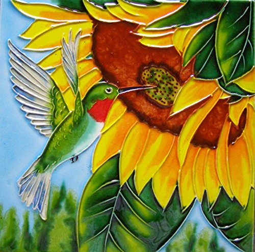 Continental Art Center BD-2334 Art Tile 8x8 Art Tile- Hummingbird & Sunflower