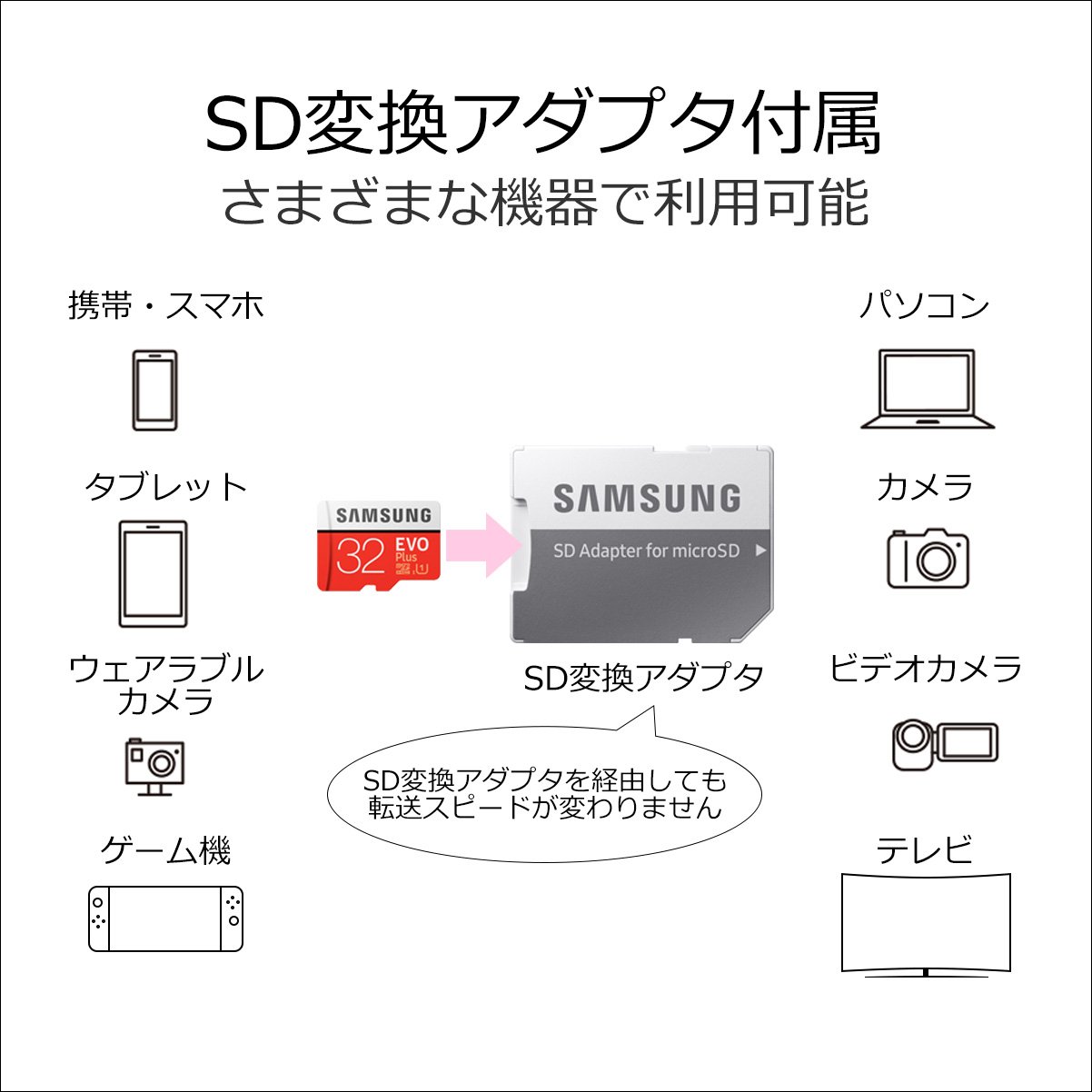 microSD EVO+ [Newモデル] 最大読み出し速度95MB/s、最大書き込み速度20MB/s