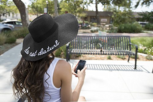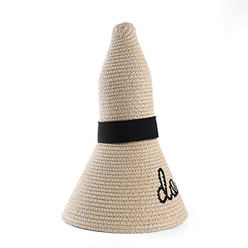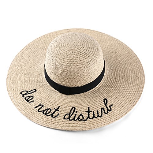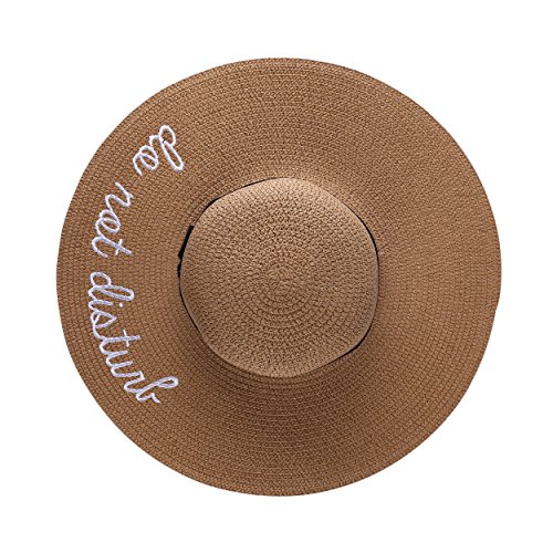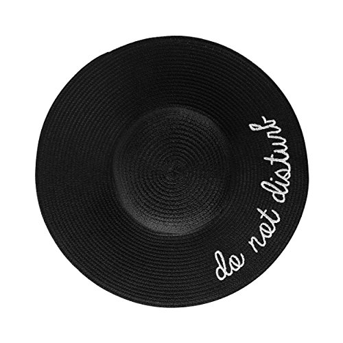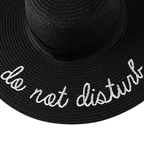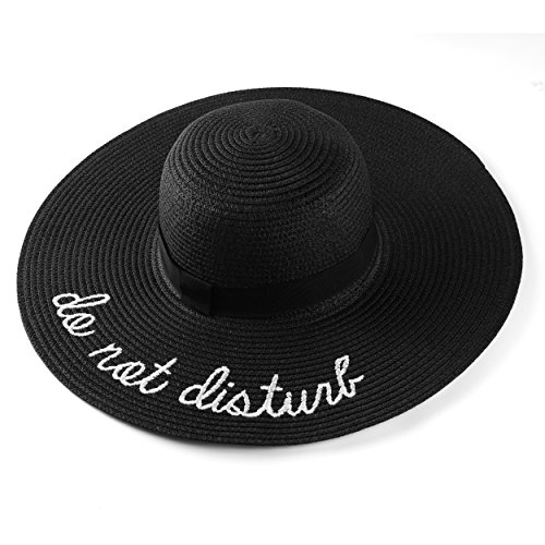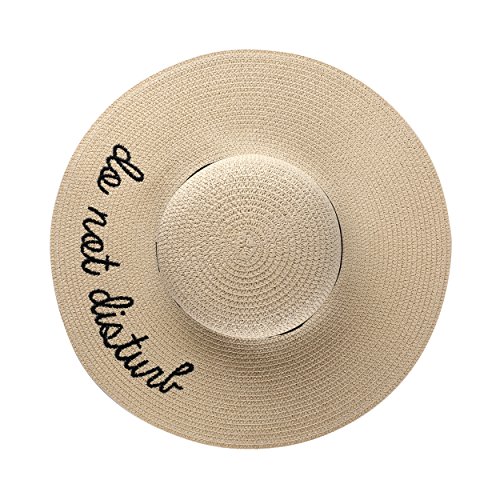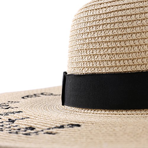 Aerusi Embroidery Large Floppy Wide Brim Straw Foldable Beach Sun Hat Caps | Lightweight and compact designed. Make out of breathable paper straw material. Wide brim floppy protect you from sun's rays. Foldable and shapeable, easy to carry it on the go. Perfect prop for photo shoot when sea travelling, gardening, at the beach.