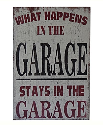 - A single "What happens in the Garage stays in the Garage" wooden wall sign