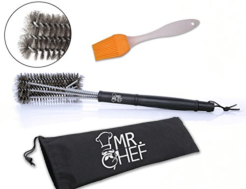 - KEEP YOUR HANDS SAFE AND PREVENT BURTNS AND INJURIES: Forget about short, uncomfortable grill brushes that fail to keep your hands safe! The MR. CHEF wire brush for grill features an 18’’ long, weather resistant handle that will allow you to reach and clean every corner without burning your hands!