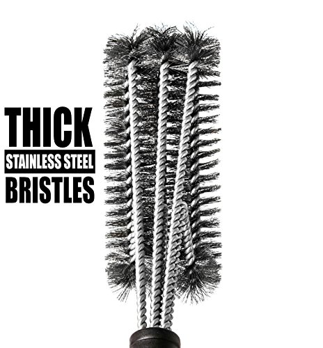 - YOU BUY ONCE, YOU ENJOY FOR LIFE: This amazing BBQ and grill scraping and cleaning brush is made of heavy duty stainless steel. The 3 brushes in 1, triple surface design along with the durable hard wire bristles promise to remove the toughest residue without scratching or damaging your barbecue in any way!