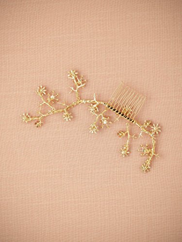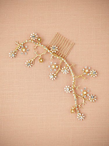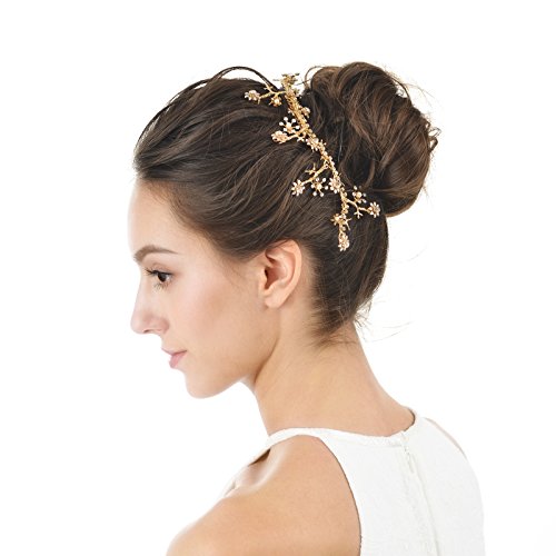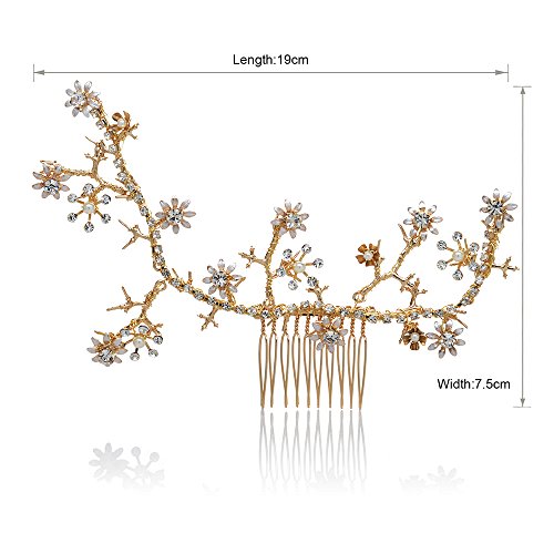 AWEI BRIDAL Diamond Wedding Hair Comb Gold Hand Wired Spray Prom Hair Accessories Gold Headpiece with Pearls