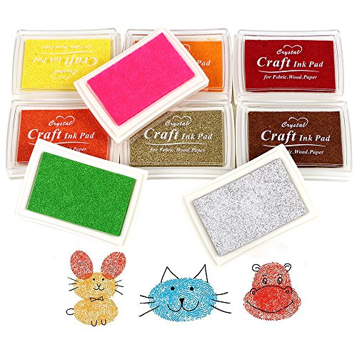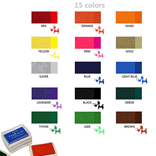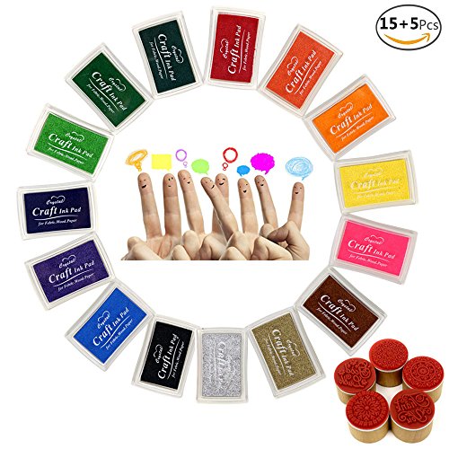 JUSLIN 15 Colors Crafts Ink Pads for Rubber Stamp DIY Scrapbooking and Card Making Decoration, with 5 Wooden Stamps as Gift