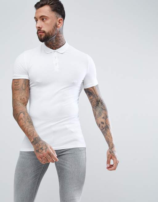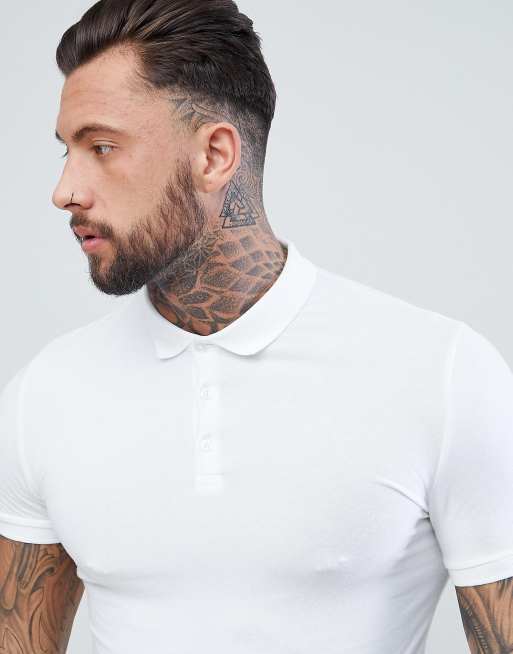 ASOS DESIGN Muscle fit jersey polo in white