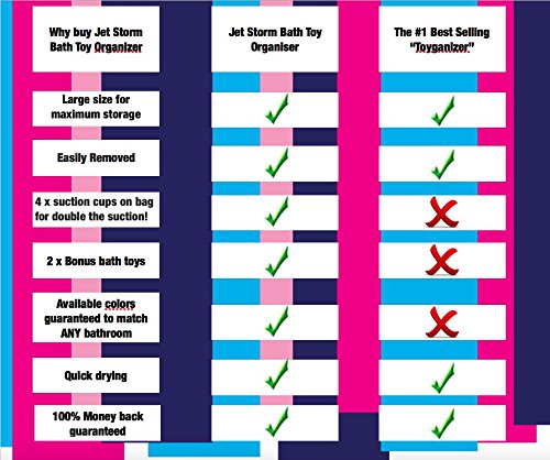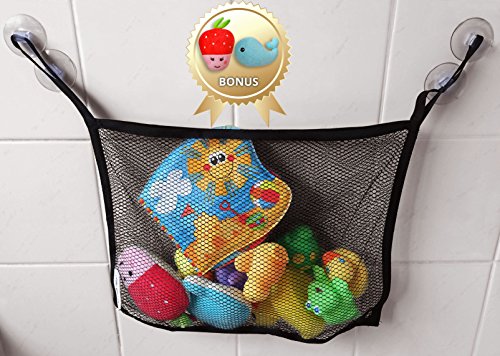 Jet Storm Babies + Shower Toys Organizer + Bathtub Toy Organizer Storage + Black + 4 Extra Strong Suction Cups + 2 Bonus Bath Toy Sponges