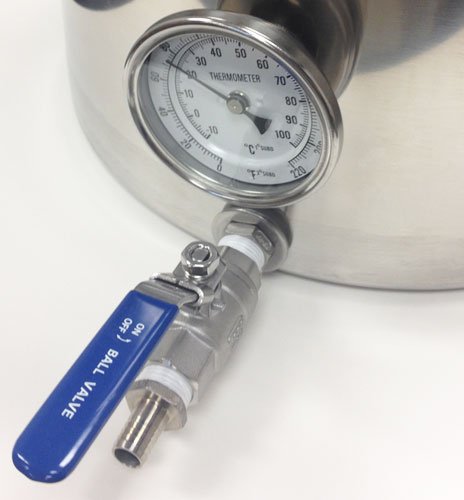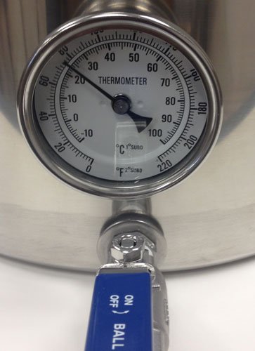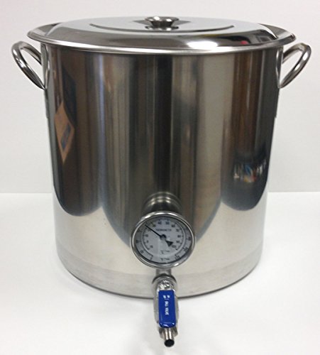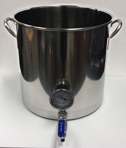 This is a 32 quart or 8 gallon stainless steel stock pot with a weldless ball valve and a weldless thermometer. The ball valve includes the high temp orings, bulkhead, valve, and 1/2 in. barbed nipple. All metla parts are stainless steel. The weldless thermometer includes a 2 in. probe, 3 in. dial face from 0-220 degrees F, calibration screw, high temp orings and bulkhead. All metal parts on the thermometer are stainless steel. This kettle is durable and built to last.Feature