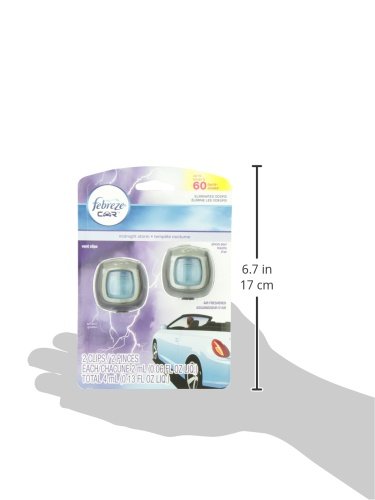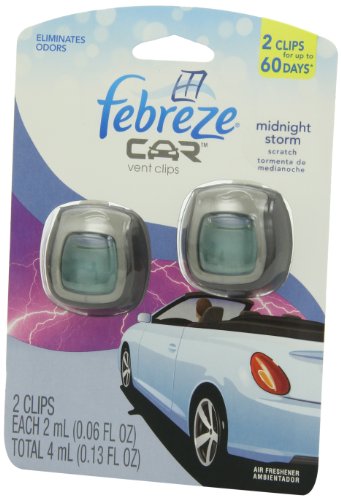 Doesn't just mask, truly eliminates odors^Febreze CAR Vent Clips slowly release freshness for up to 30 days (on low and under ambient conditions)^Attaches easily to vent^Select your level of intensity to control how much freshness is released^Enjoy the feeling of distant thunder and steady rain with the deep, dramatic fragrance of Midnight Storm