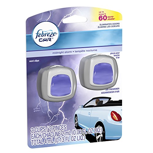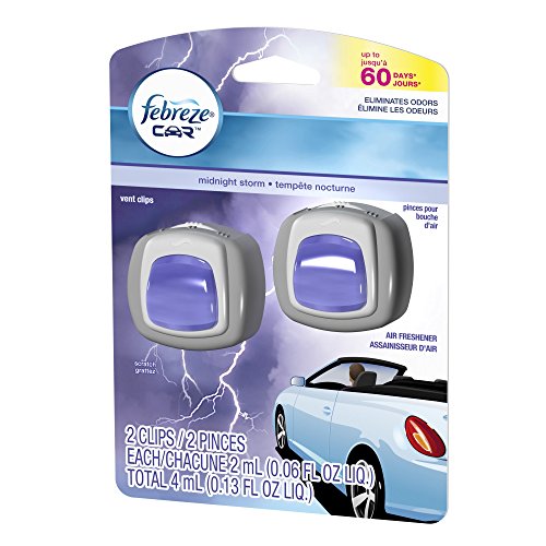 Febreze 2 mL (0.06 FL OZ) Car Vent Clips Air Freshener and Odor Eliminator, Midnight Storm Scent (2 CLIPS)