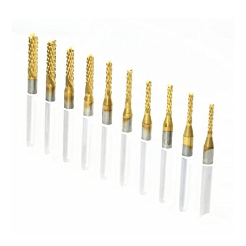 SHINA 10pcs High Quality Titanium Coat Carbide 1.5mm-3.175mm End Mill Engraving Bits CNC Rotary Burrs Set (ST1.5-3.175mmTi)