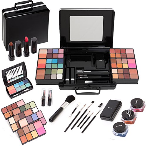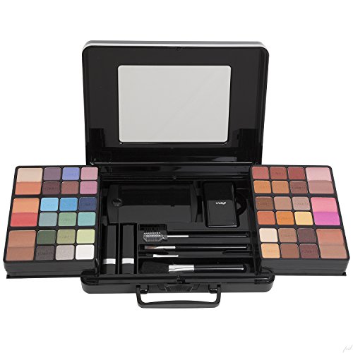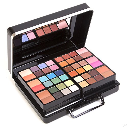 -. Title : Jumbl™ Carry All Beauty Case - Content 36 Eyeshadows, 12 Blushers, 4 Press Powders, 6 Lip Colors, 2 Lipsticks, 3 Body Glitters, 1 Mascara, 1 Eyeliner, 2 Lip Glosses, 1 Shimmer Powder, 1 Mirrored Compact, and Applicators - Jumbl™ Brush and Mirror Included