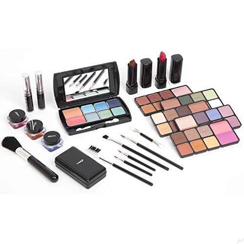 -. Feature : Content 36 Eyeshadows, 12 Blushers, 4 Press Powders, / 6 Lip Colors, 2 Lipsticks, 3 Body Glitters, / 1 Mascara, 1 Eyeliner, 2 Lip Glosses, / 1 Shimmer Powder, 1 Mirrored Compact, and Applicators / Jumbl™ Brush and Mirror Included